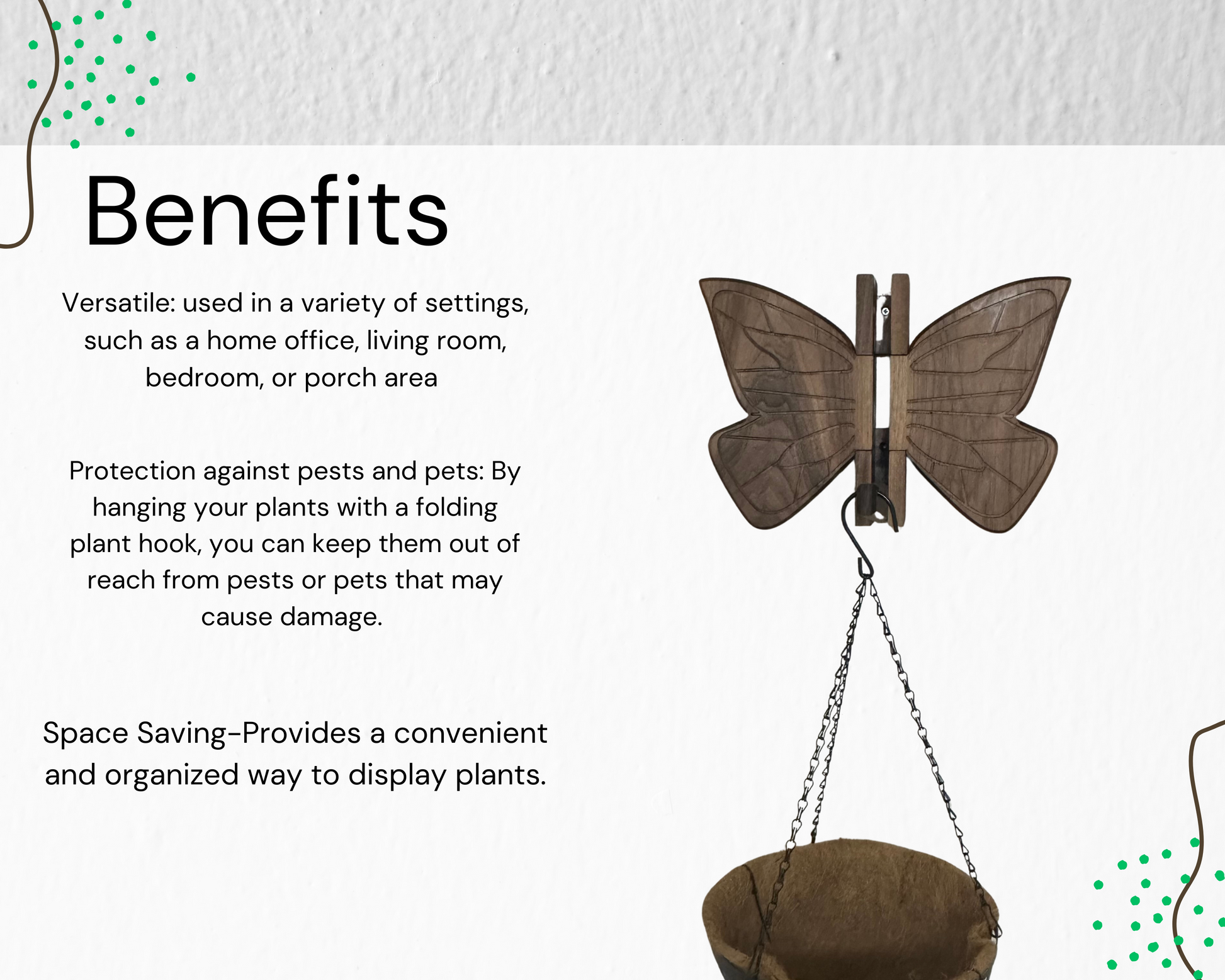 Whether you’re displaying a lush hanging plant, organizing garden tools, or adding a whimsical touch to your space, this butterfly hook is as versatile as it is beautiful.